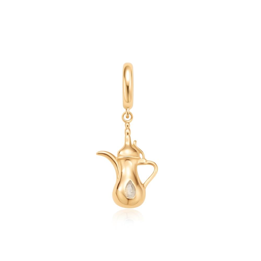 - اسم المنتج: تعليقة شارم ذهب على شكل دله مزينة بالعقيق الأزرق.